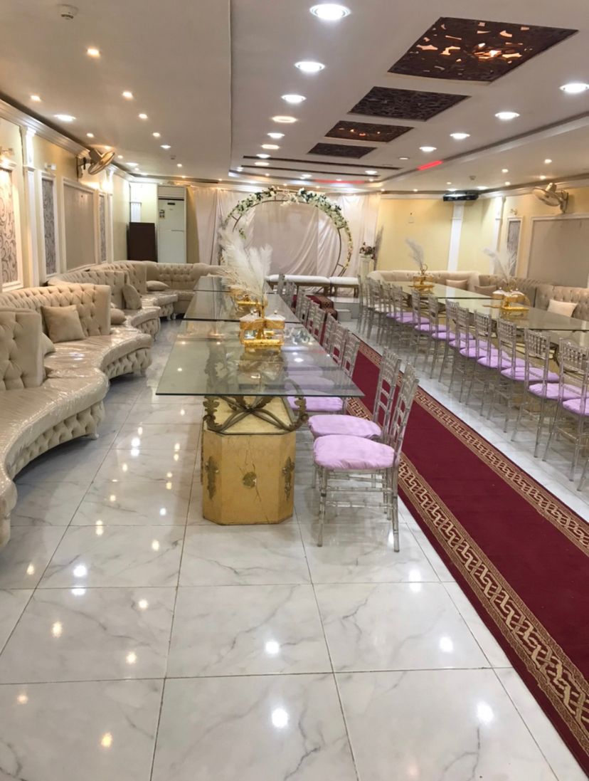القاعه تكفي لاكثر من ٦٥ شخص ويضاف لها طاولات خارجيه اضافيه بقسم الفيلا تكفي لاكثر من ٩٠ شخص .. مع امكانية زيادة عدد الكراسي بايجار من محلات خارجيه .