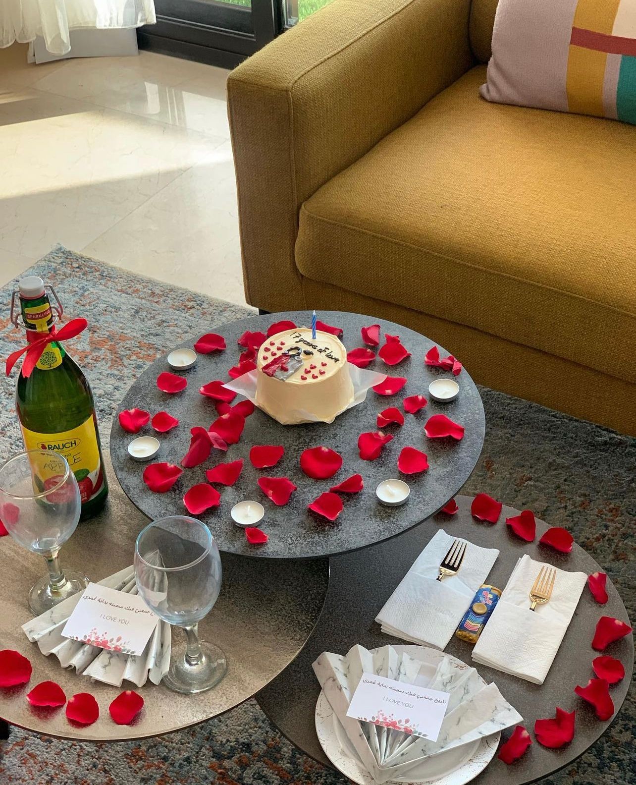 6- توفير جميع مستلزمات الكيك(صحون، شوك، سكاكين، مناديل)